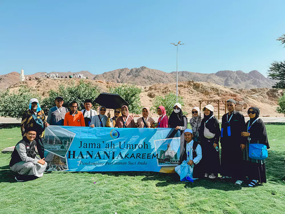 Galeri foto Hanania Kareem menampilkan momen spiritual terbaik selama perjalanan umrah dan haji, mulai dari persiapan, ibadah di Tanah Suci, hingga kebersamaan jamaah yang penuh makna.